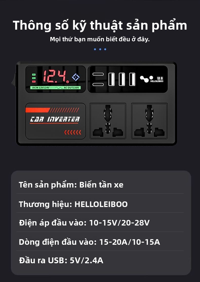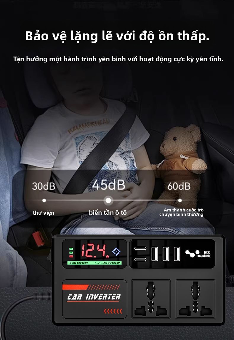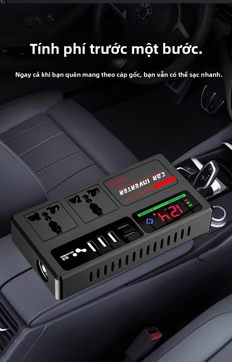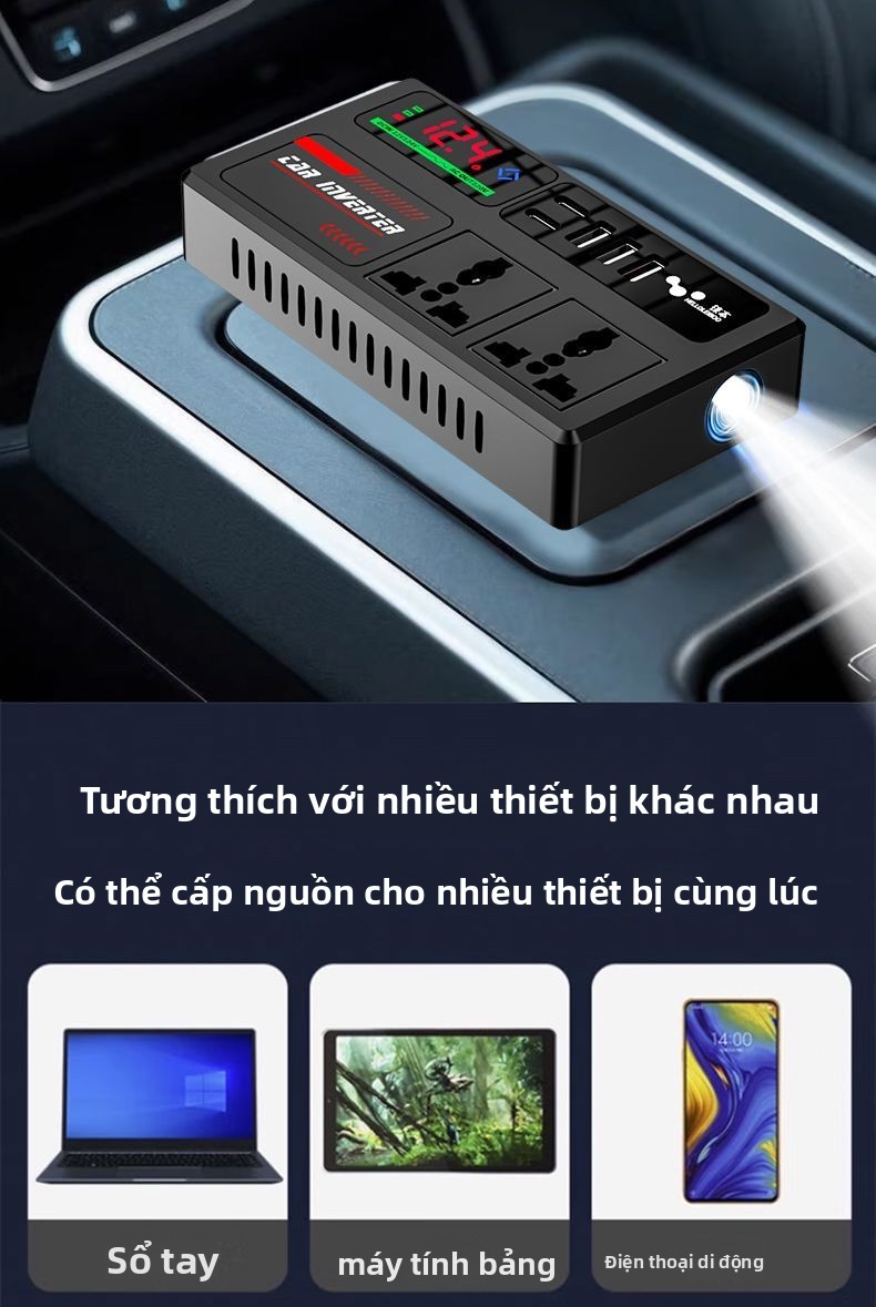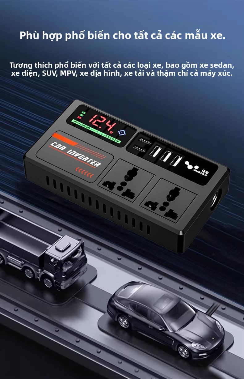 Biến tần xe hơi 12V-24V đến 220V bộ chuyển đổi điện đa chức năng bộ sạc ổ cắm cho xe tải
