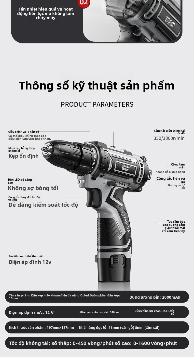 Máy khoan điện tay không dây công suất cao Ored Máy khoan điện đa chức năng Máy khoan điện lithium đ