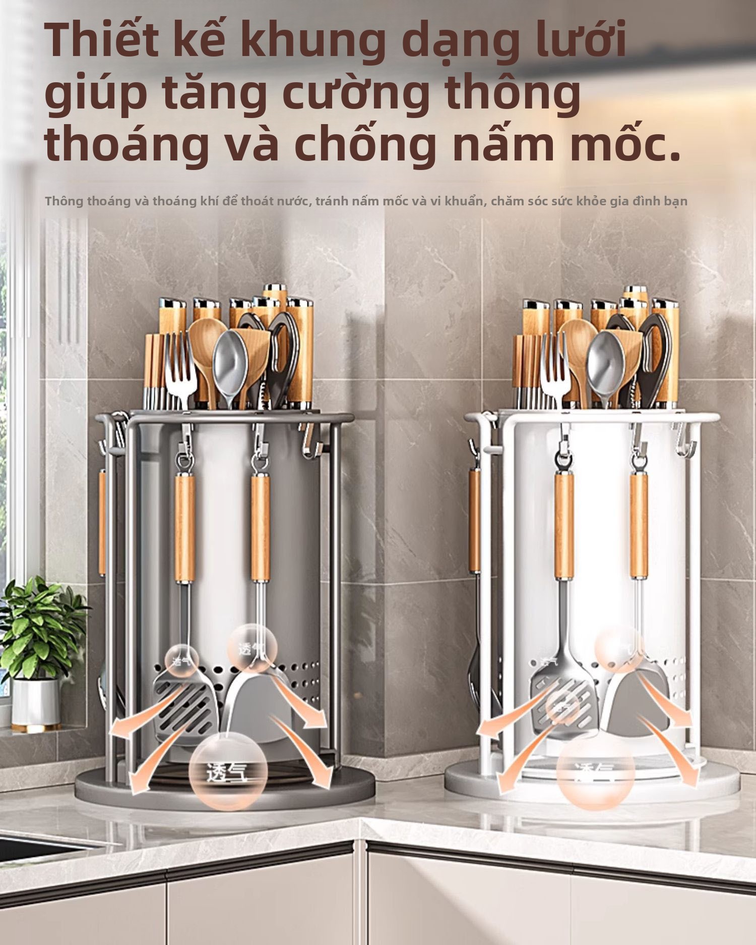 Giá đựng thìa đũa xoay giá đỡ dao giá đỡ nồi xẻng thìa đũa ống dao làm bếp giá đỡ một mảnh hộp lưu trữ đồ tạo