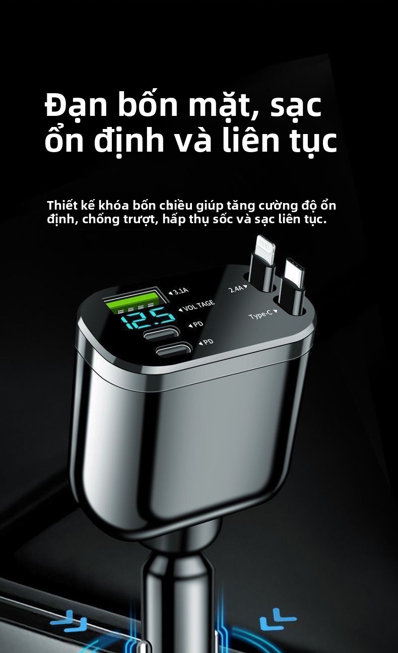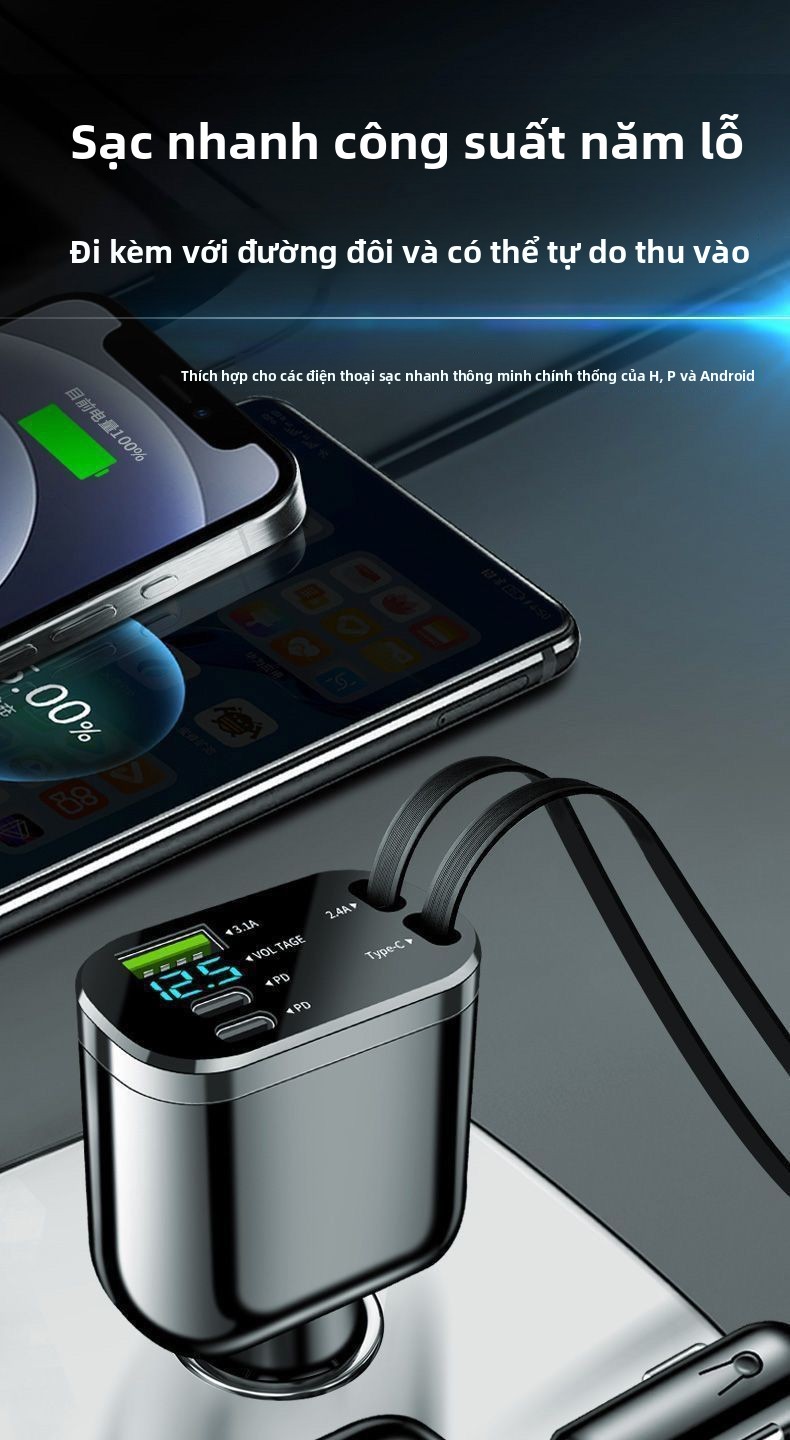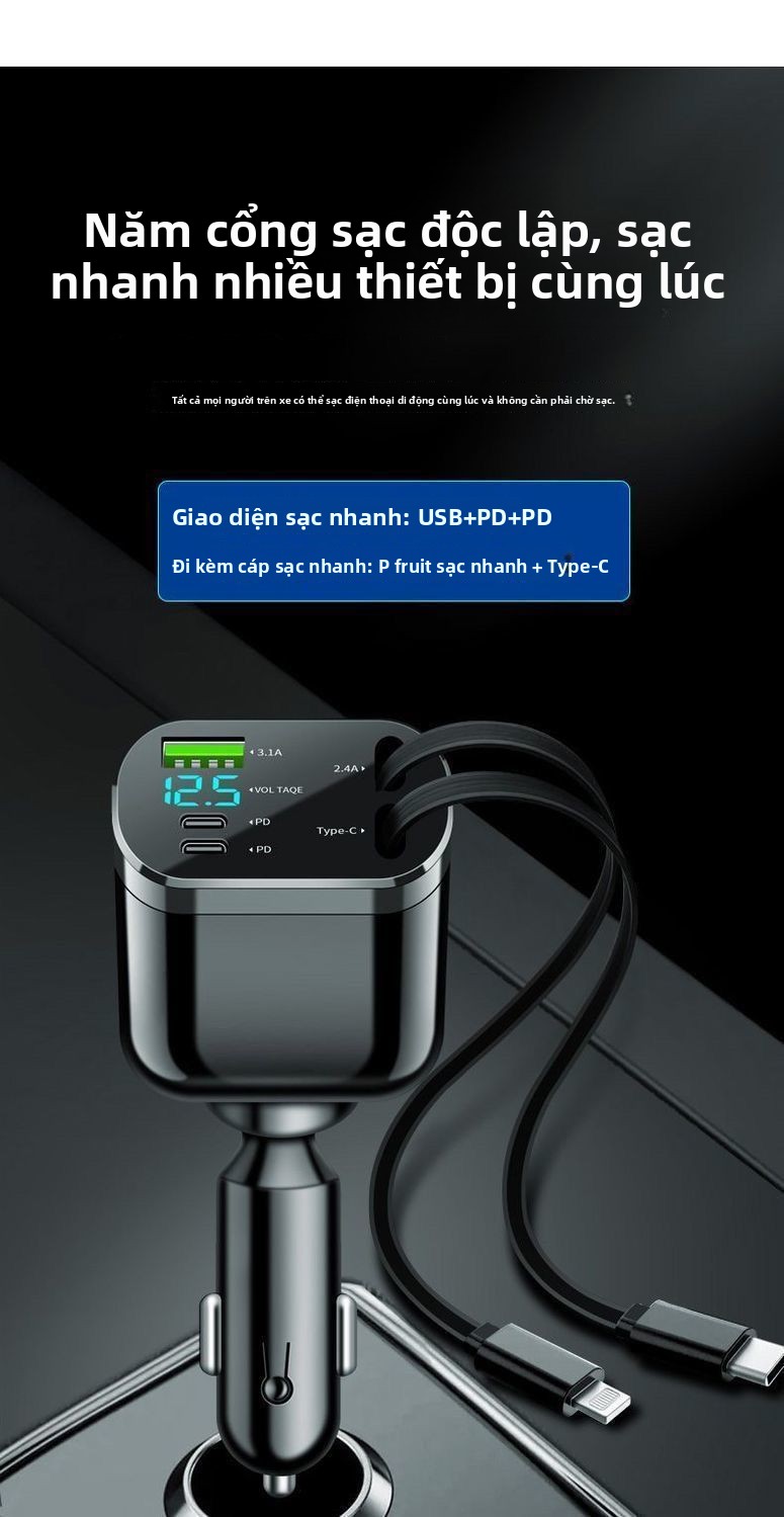 sạc xe tẩu ô tô Carfera 240W siêu nhanh sạc xe cổng tẩu một kéo bốn áp dụng cho Apple Huawei Xiaom