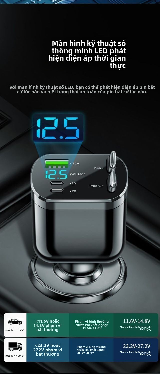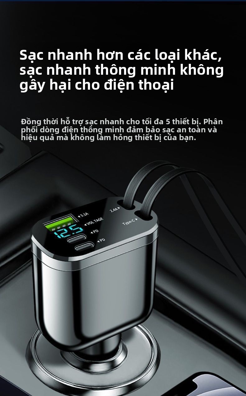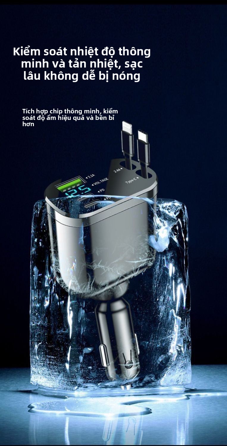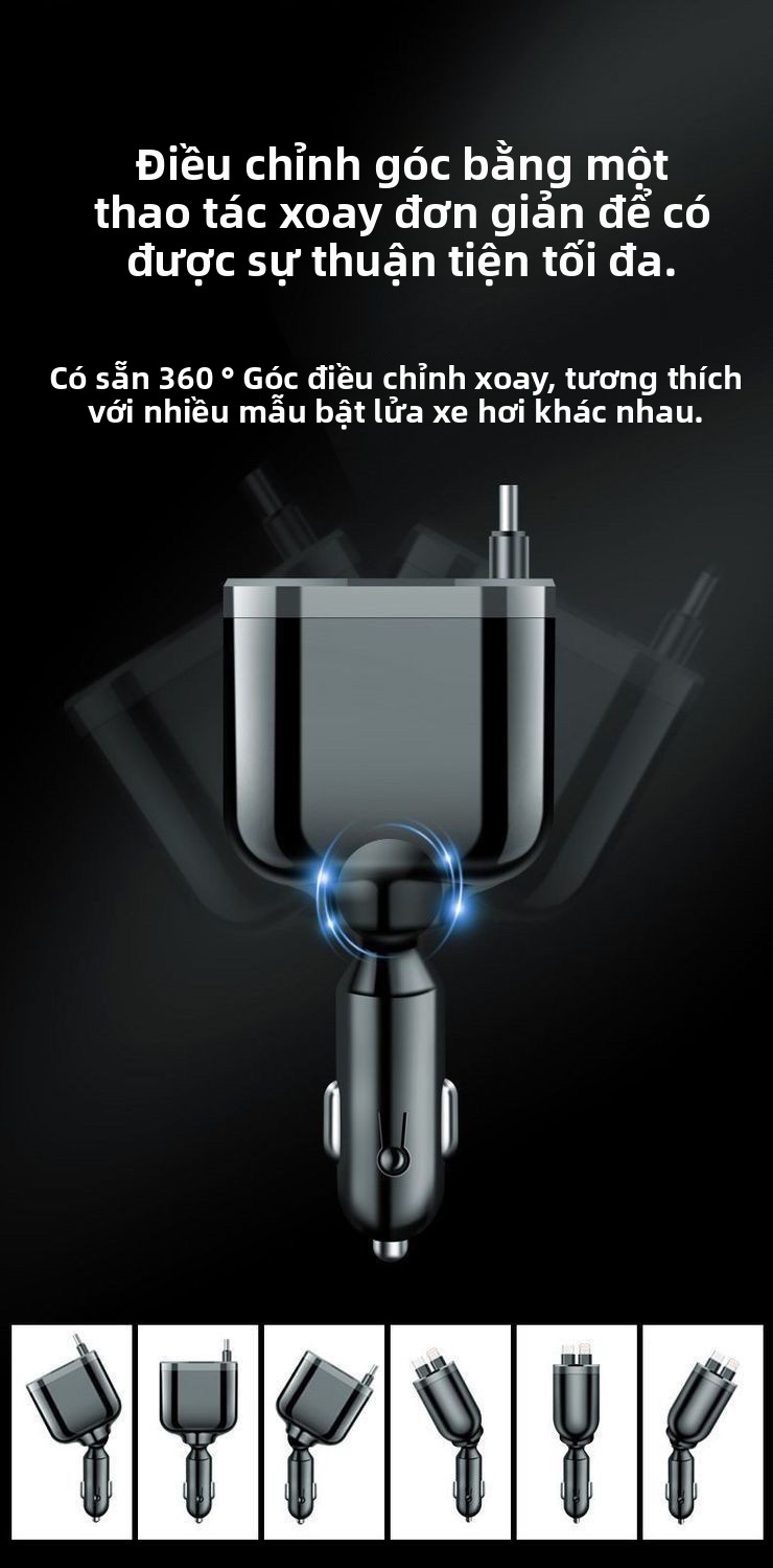 Sạc tẩu xe 90W sạc nhanh 3 trong 1 với dây sạc xe ô tô chung đèn khí quyển điện thoại di động sạ