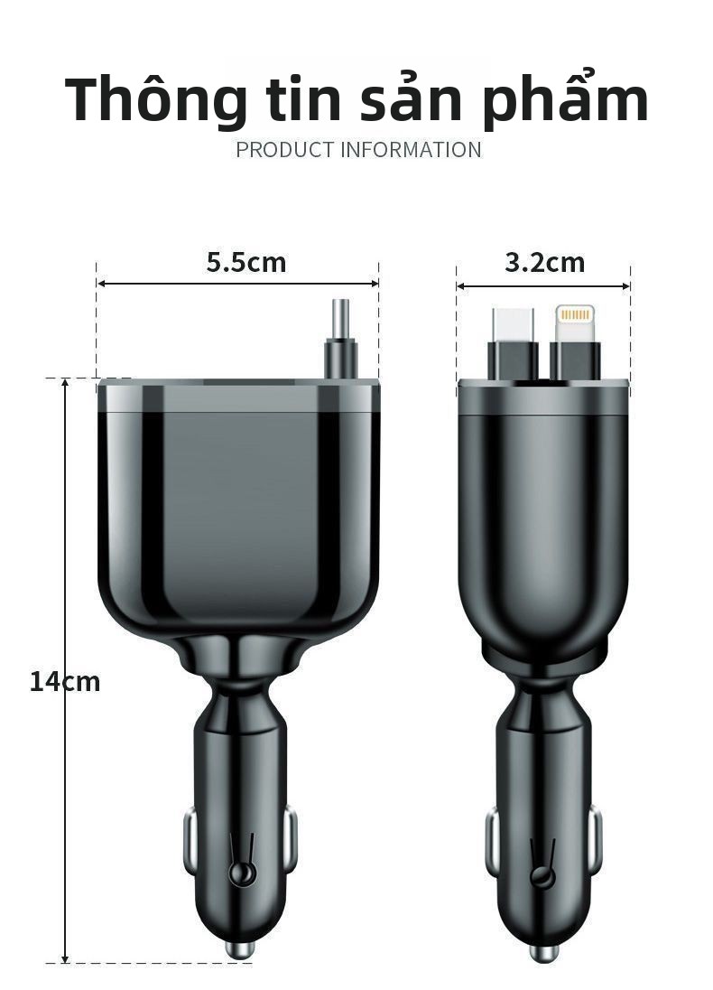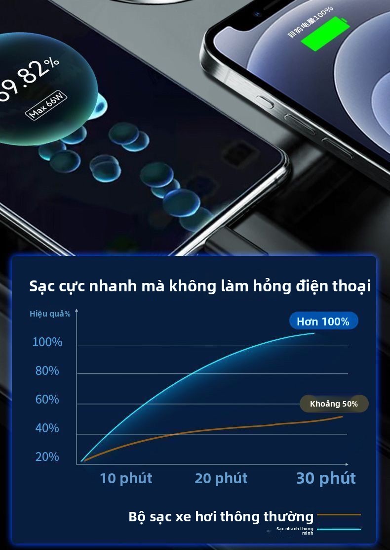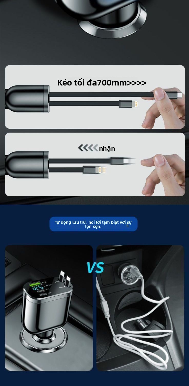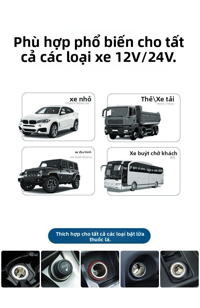 Sạc tẩu xe 90W sạc nhanh 3 trong 1 với dây sạc xe ô tô chung đèn khí quyển điện thoại di động sạ