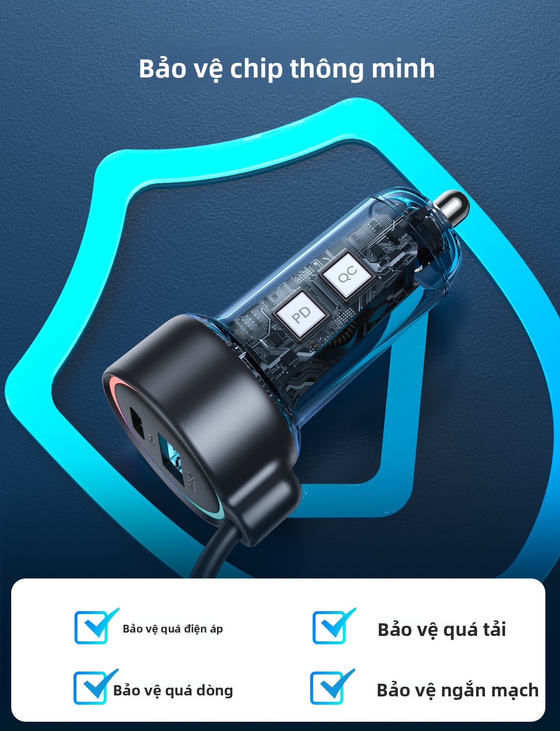 sạc xe cổng tẩu ô tô cả apple và android
